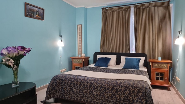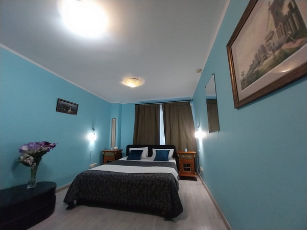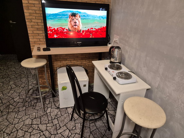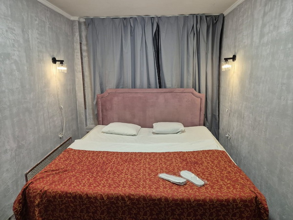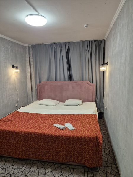 Простой и недорогой номер, в котором есть все для комфортного отдыха: двуспальная кровать с ортопедическим матрасом, прикроватные тумбы, светильники, телевизор, душ, санузел, занавески на окнах, полотенца для лица и тела. Здесь нет дорогой мебели или дизайнерского ремонта, зато гарантируется чистота, отсутствие шумных соседей, вежливое обслуживание и возможность хорошо провести время наедине за минимальную плату.