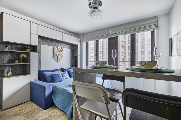 Бронируя апартаменты на часы в Москве, вы можете не беспокоиться за свой комфорт и безопасность. Интерьер в серо-голубых тонах с добавлением благородных белых и синих красок в сочетании с мебелью премиум-класса создают отличное настроение. Здесь на лоне стиля и современного дизайна вы ощутите максимум удовольствия. Для проживания предусмотрено все необходимое, включая: