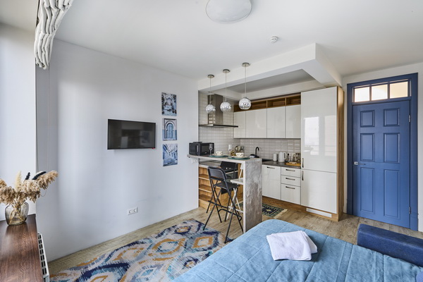 Blue Sky — это современные апартаменты ЖК «Савеловский Сити», расположенные на 19 этаже престижного небоскреба. Отсюда открываются великолепные виды на город, Останкинскую башню и другие достопримечательности мегаполиса. Место идеально подходит для романтических встреч, сюрпризов и праздников для двоих. Вы можете встретить здесь красивый рассвет или полюбоваться волшебным закатом с высоты птичьего полета.