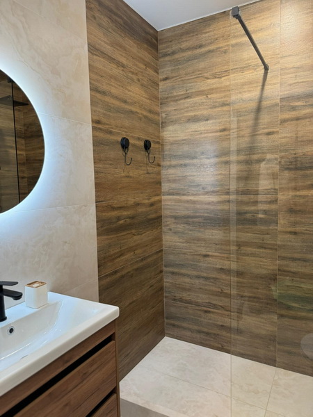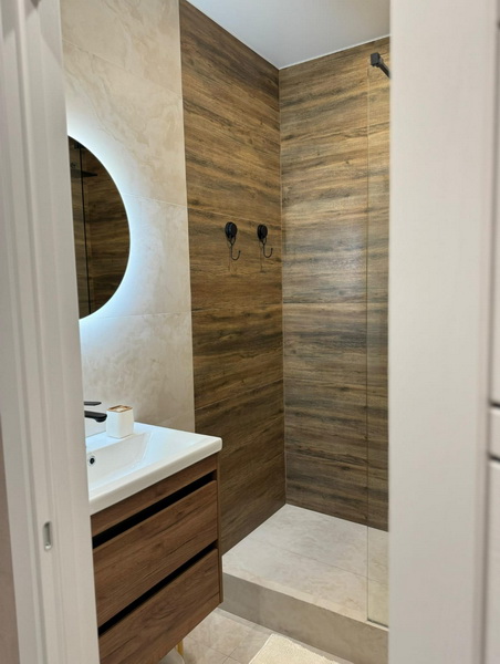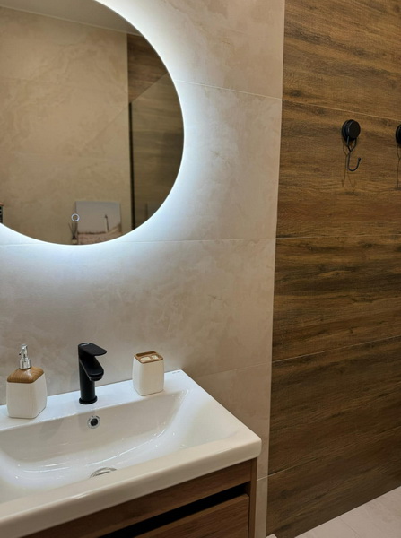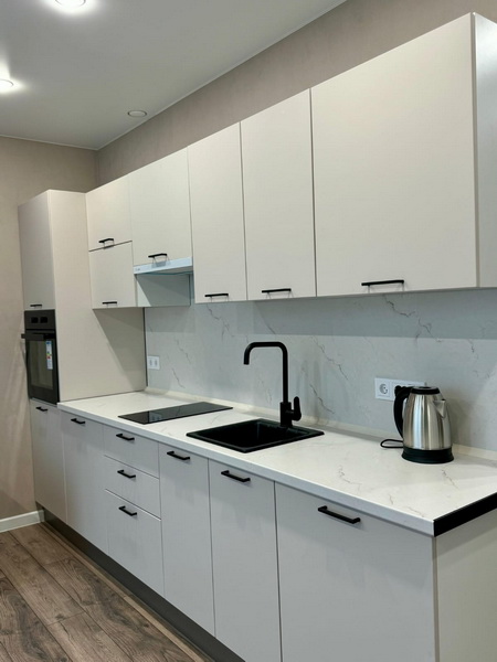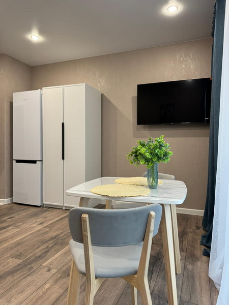 В номере есть: оборудованная кухня, чайник, холодильник, микроволновая печь, стиральная машина, посуда.