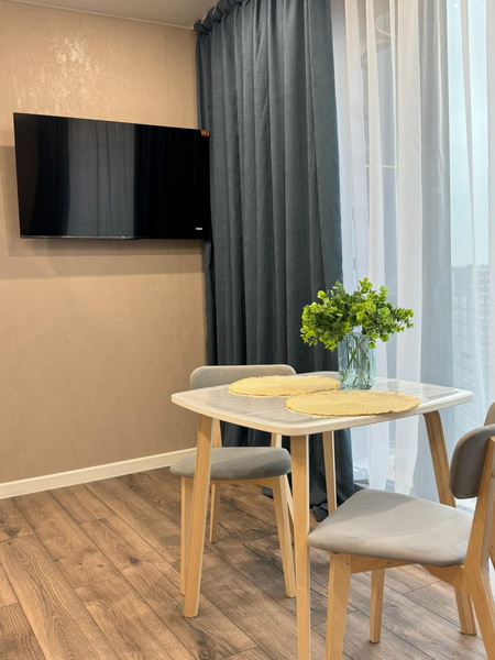 Апартаменты с красивым видом из окон расположены на 24-ом этаже нового жилого комплекса и полностью оснащены всем необходимым.