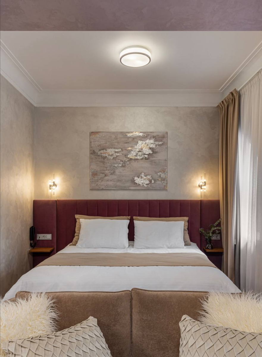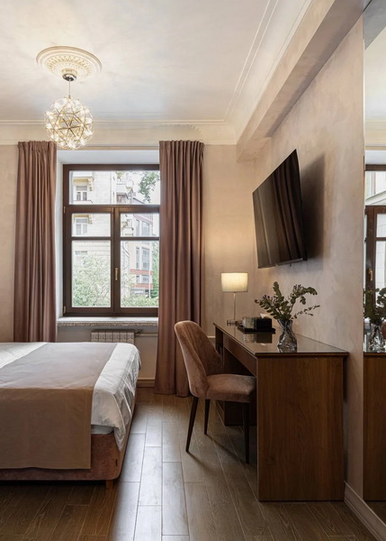 • Люкс. Более просторный номер с усиленным комфортом. Здесь особенно приятно уединиться, чтобы отвлечься от городской суеты и продлить вечер.