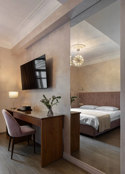 • Премиум. Вершина стиля и простора в отеле. Этот номер создан для особых случаев и незабываемых свиданий, где важна каждая деталь интерьера и максимальный уровень приватности.