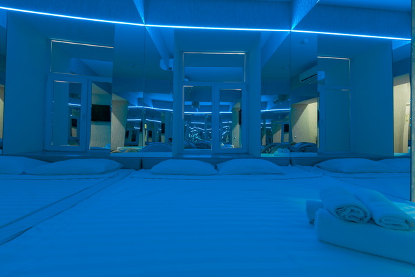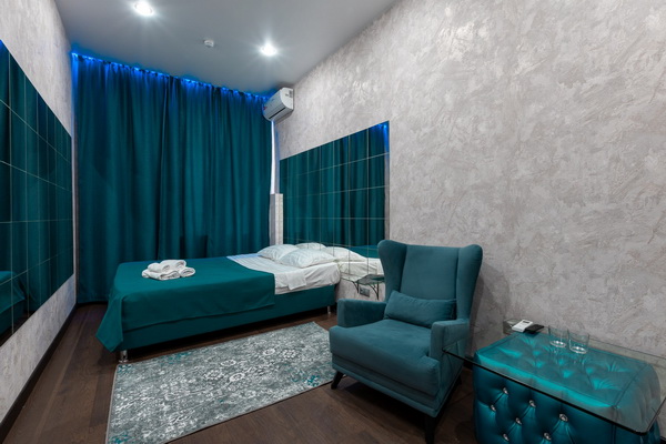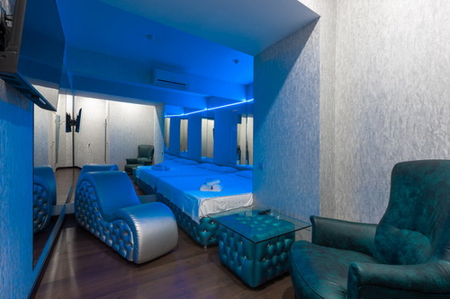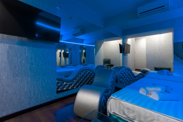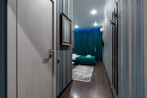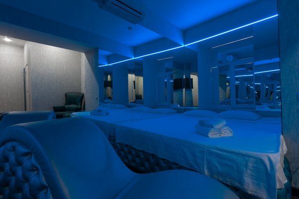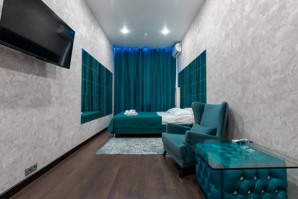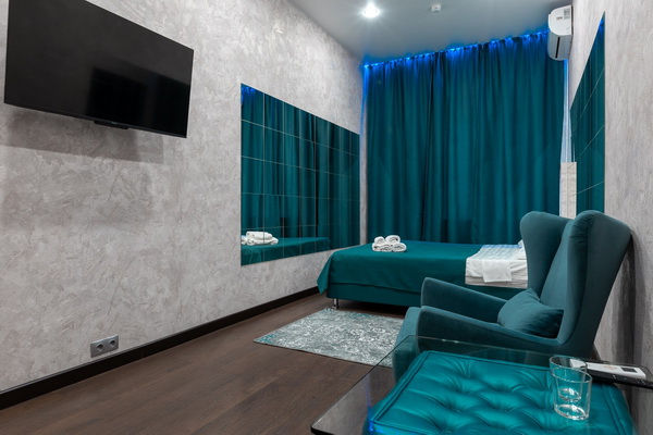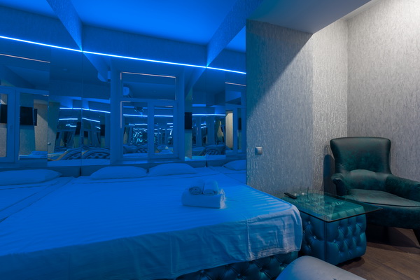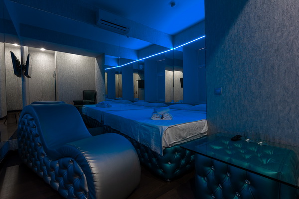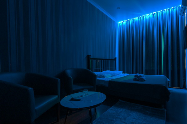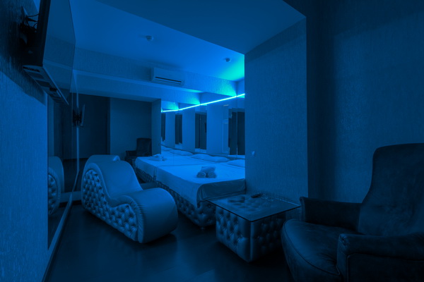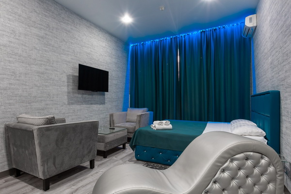 Делюкс 8 на Тверской — это номер на час, созданный для двоих. В самом центре Москвы, но за окном не слышно города. Внутри царит особый полумрак: мягкая синяя подсветка окутывает пространство, настраивая на расслабление и близость.