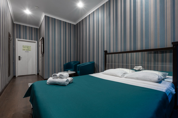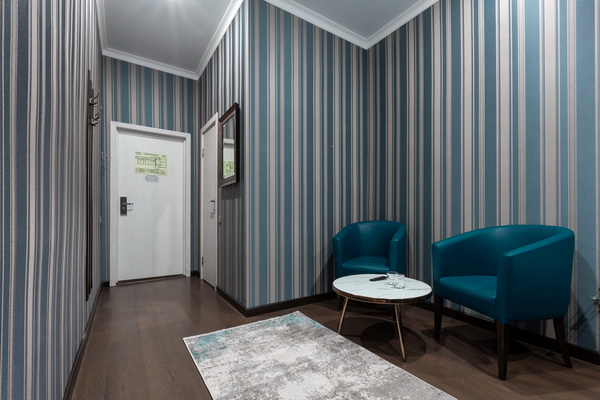 Почасовой номер 2 Делюкс в отеле De Art на Тверской создан для тех, кто ценит комфорт и романтику в центре Москвы. Элегантный интерьер с парой уютных кресел и журнальным столиком располагает к неспешным разговорам. Просторная двуспальная кровать обещает полное расслабление, а мягкие халаты и тапочки добавляют ощущение домашнего уюта.