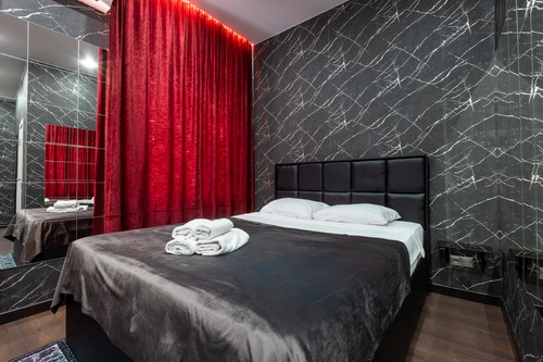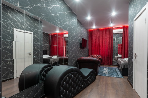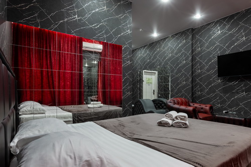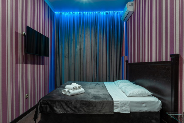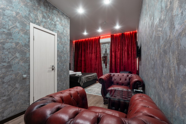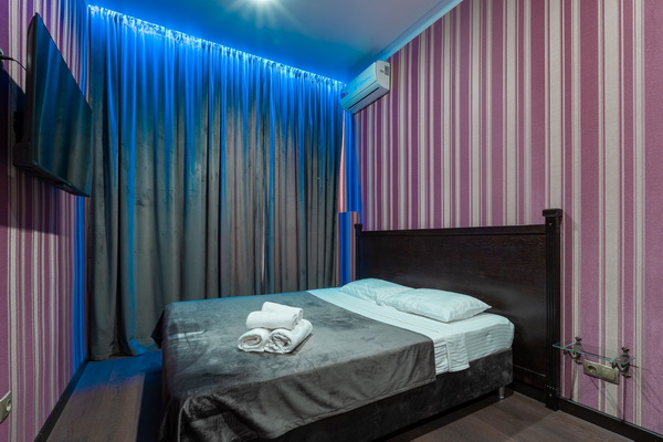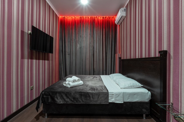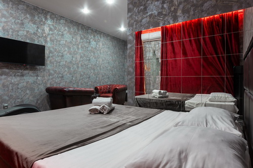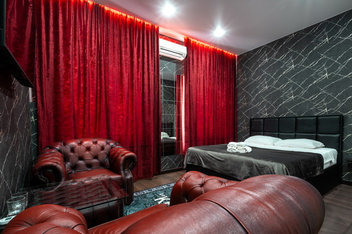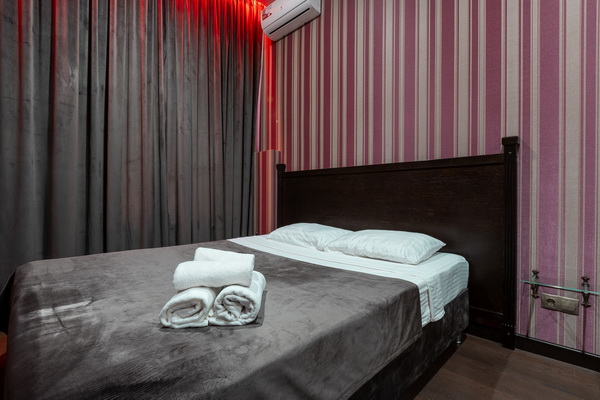 Ищете почасовой номер в центре Москвы? Делюкс 9 на Тверской. Включите красную подсветку — и комната превратится в уютное убежище для двоих. Полумрак расслабляет, настраивает на близость и помогает забыть о городской суете.