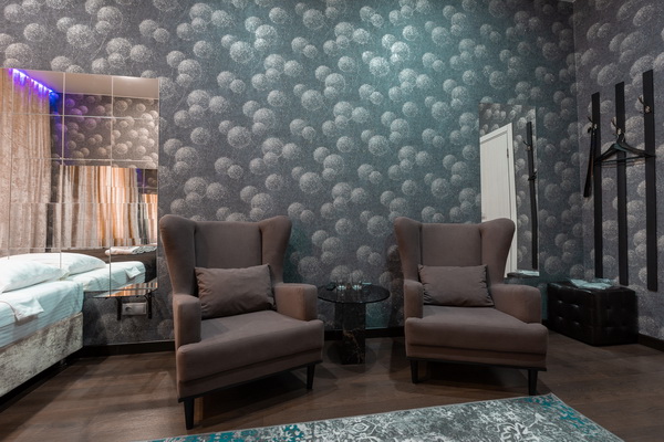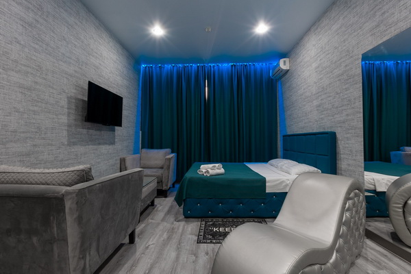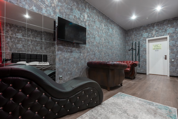 Номер на пару часов 6 Делюкс — это не просто место для встречи, а продуманное пространство для чувств. Интерьер в спокойных серых тонах обволакивает мягкостью, настраивая на лирический лад. Вы оказываетесь в мире, где важны только вы вдвоем.