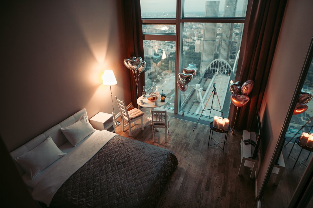 Стильный номер расположен на 67 этаже или 300 метрах над землей. Здесь на высоте полета птиц вы можете устроить незабываемый романтик, нежное и полное впечатлений свидание, отметить годовщину свадьбы или даже сделать предложение руки и сердца.