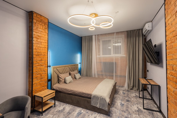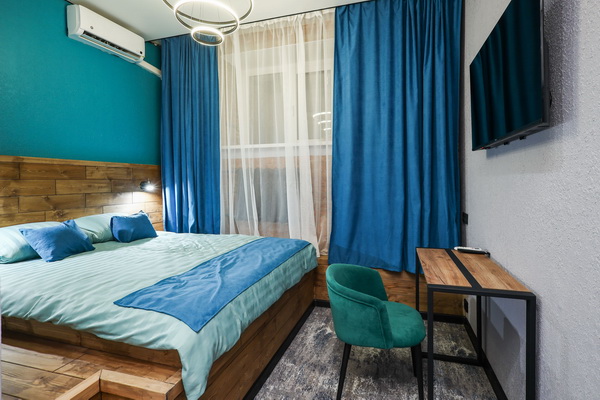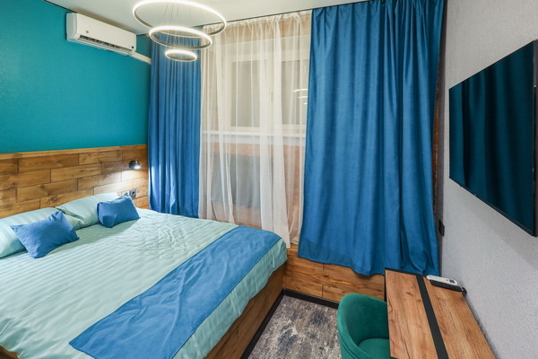 В номерах выполнен свежий ремонт. Все детали интерьера продуманы до мелочей. На фоне спокойных базовых тонов комнаты выделяются яркие акценты, которые задают настроение и дарят гамму положительных эмоций.