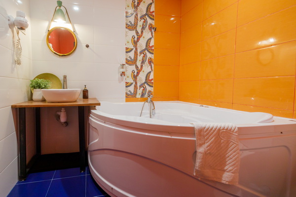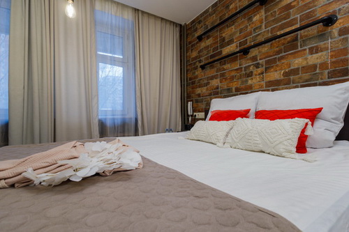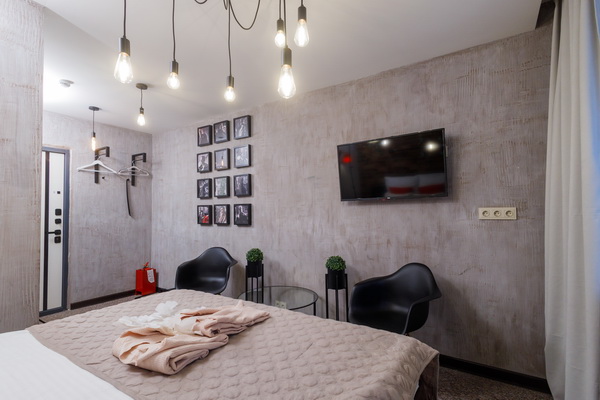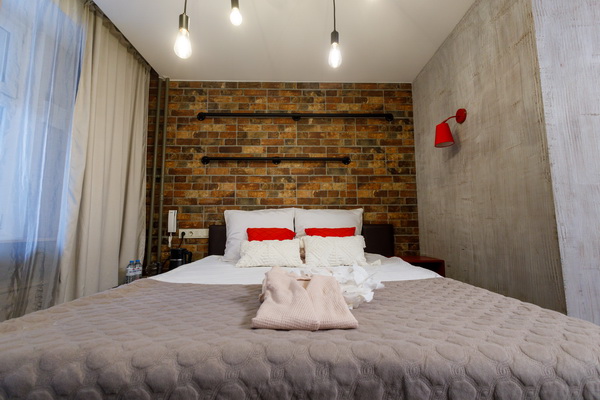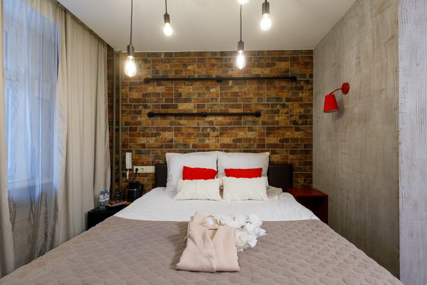 Интерьер апартаментов олицетворяет ту страну, которая ему «досталась». К примеру, номер США в этой гостинице на Римской оформлен в стиле Лофт: кирпичная стенка, гирлянда с крупными лампочками на потолке, темная мебель, яркие гардины, разрисованные американскими символами. А в апартаментах Африка преобладают характерные для этой местности коричневые тона. Взгляд притягивают оригинальный светильник и декор ручной работы: кажется, что они прибыли в Россию напрямую с этого континента.