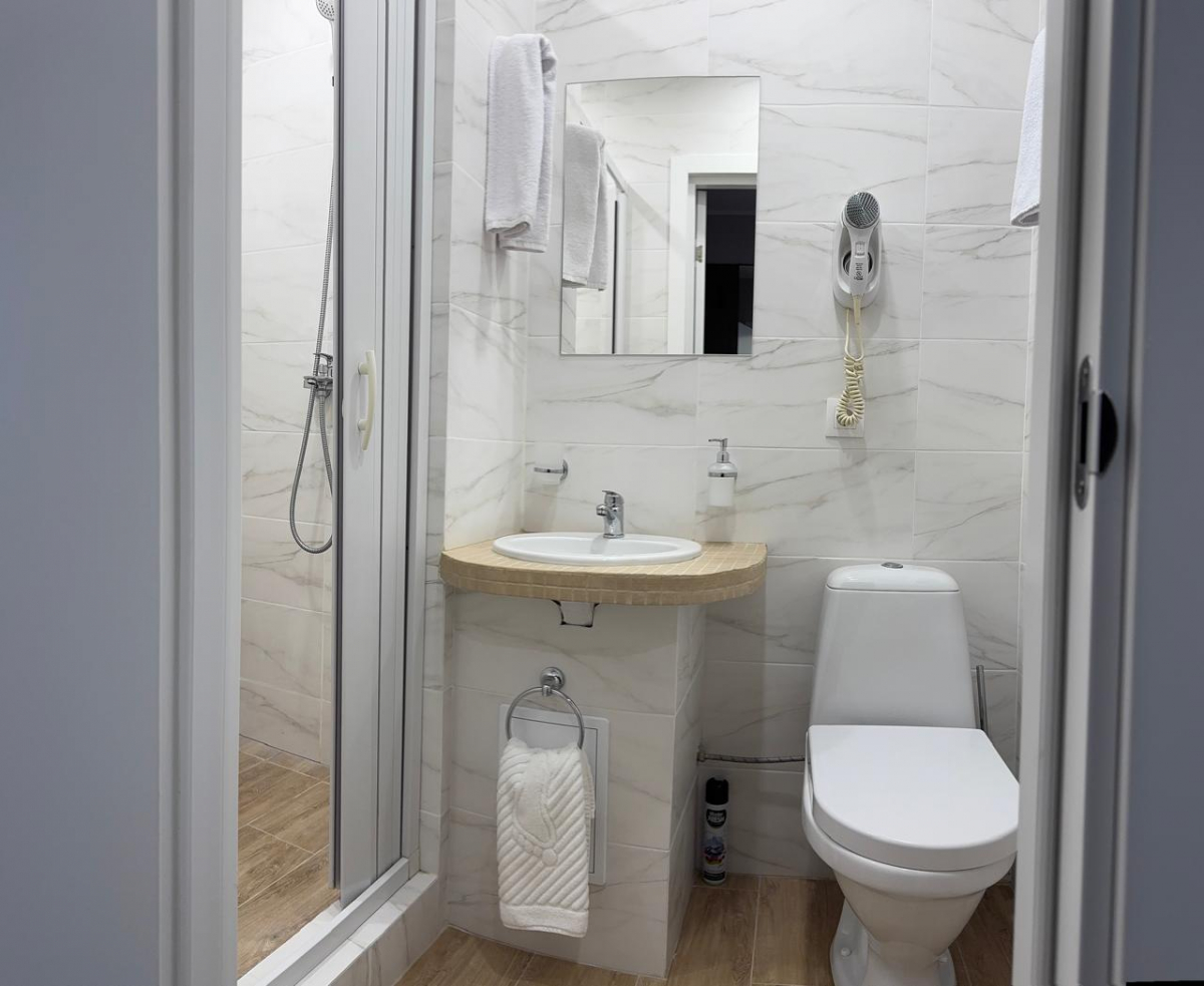 Кроме того, каждый номер оборудован отдельным санузлом с душевой кабиной, комплектом банных полотенец, бесплатными косметическими принадлежностями. Апартаменты можно снять не только на сутки, но и на ночь или на несколько часов. Заселение также возможно в любое время, так как стойка регистрации в отеле работает круглосуточно.